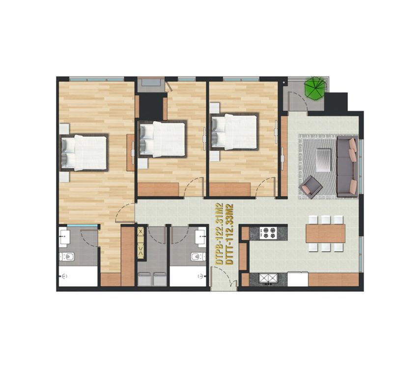 | Diện tích: 122,3 m2 | Phòng ngủ: 3 |